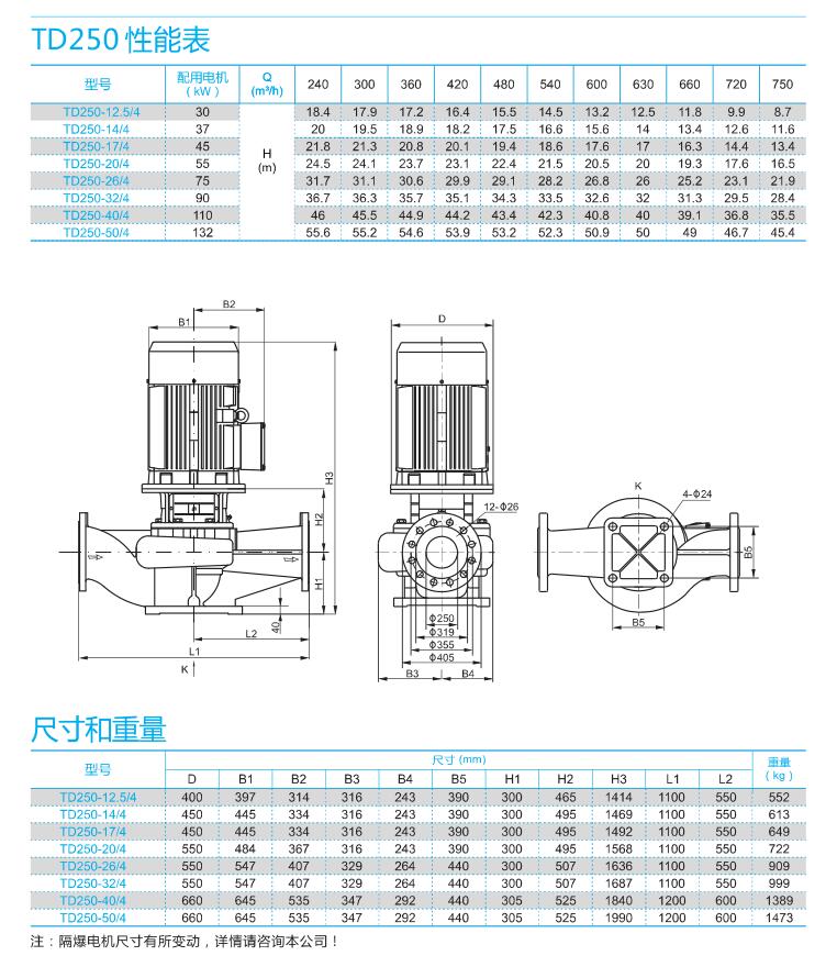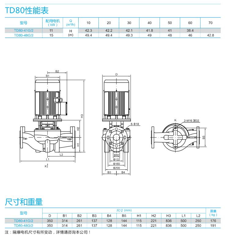南方泵業TD單級立式管道循環泵,泵進出水口在泵底同一直線上,產品設計為頂部可拉出的拆裝形式,其可以在不影響管路系統的情況下對泵進行維修。